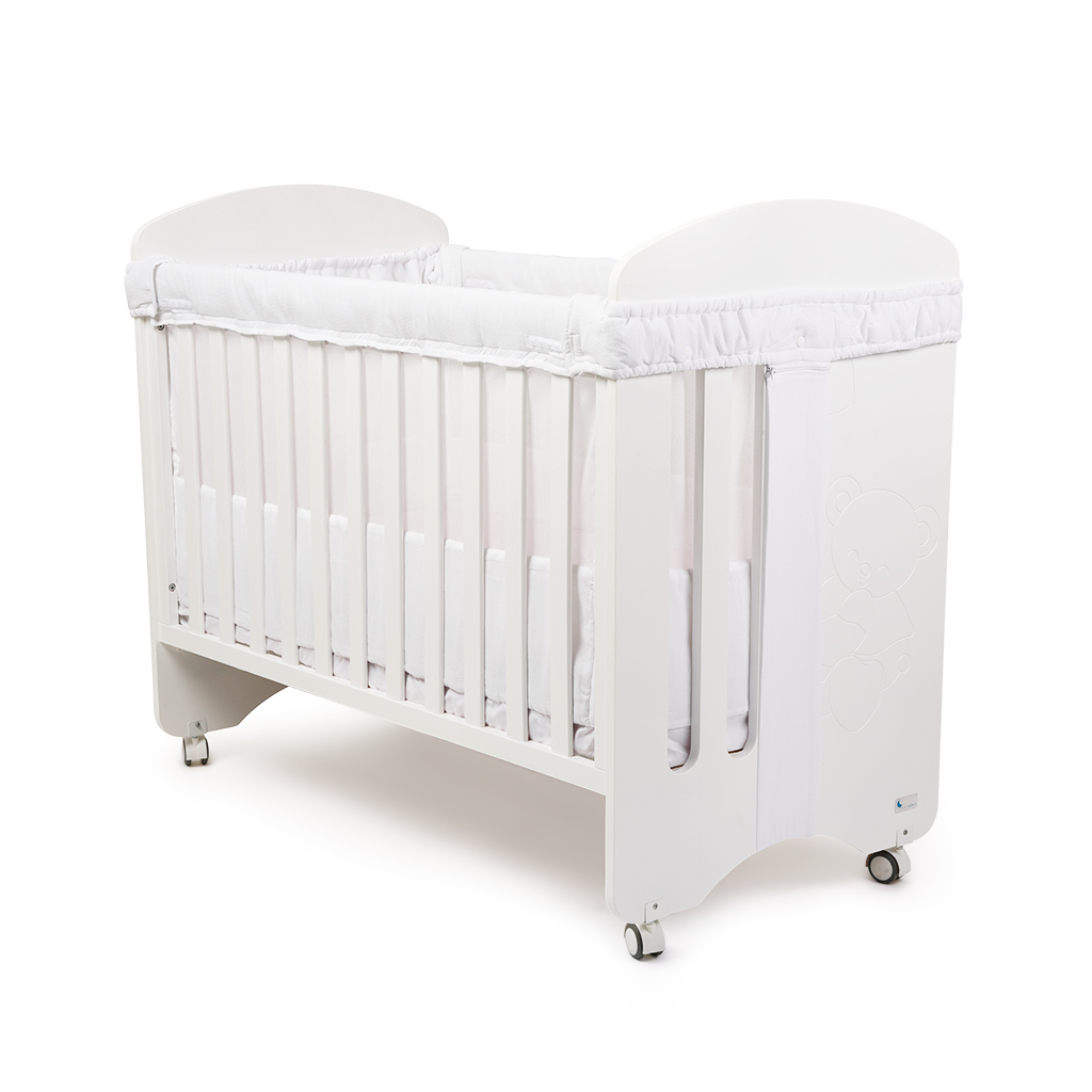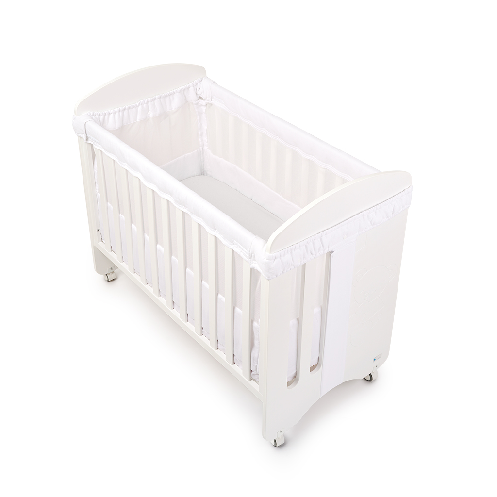 Diseñado con un sistema antigolpes innovador, evita la introducción de extremidades entre los barrotes y limita que el bebé pueda morder la barandilla. Este protector es fijo y no requiere ajustes en cada cambio de sábanas, garantizando una seguridad constante.